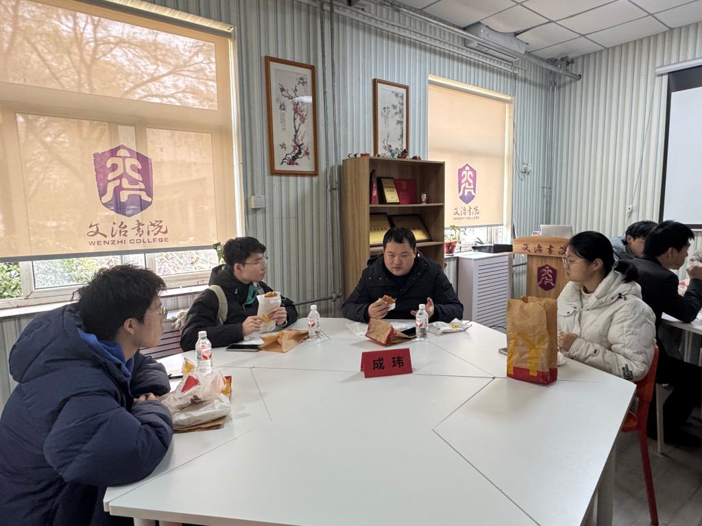 午餐会上导师们的倾囊相授点亮了同学们的学术方向,同学们的求知热忱让导师们深切体会到育人价值。正如参与同学所言:“这样的交流没有距离感,能直接听到导师们的经验,比课本里的知识更有启发。”此次活动既是温馨的美食之约,更是师生双向奔赴的育人实践。未来,文治书院将持续开展此类活动,构建紧密的师生交流与全方位指导机制,让思想火花在温暖互动中绽放,助力师生共同成长。