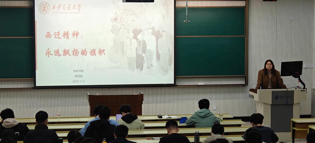 仲英书院党建秘书袁丽倩介绍了党课成绩构成、理论学习规划及主题实践具体要求,以“西迁精神 永远飘扬的旗帜”为主题,深情回溯了20世纪50年代交大师生听从祖国召唤、西行创业的峥嵘岁月。