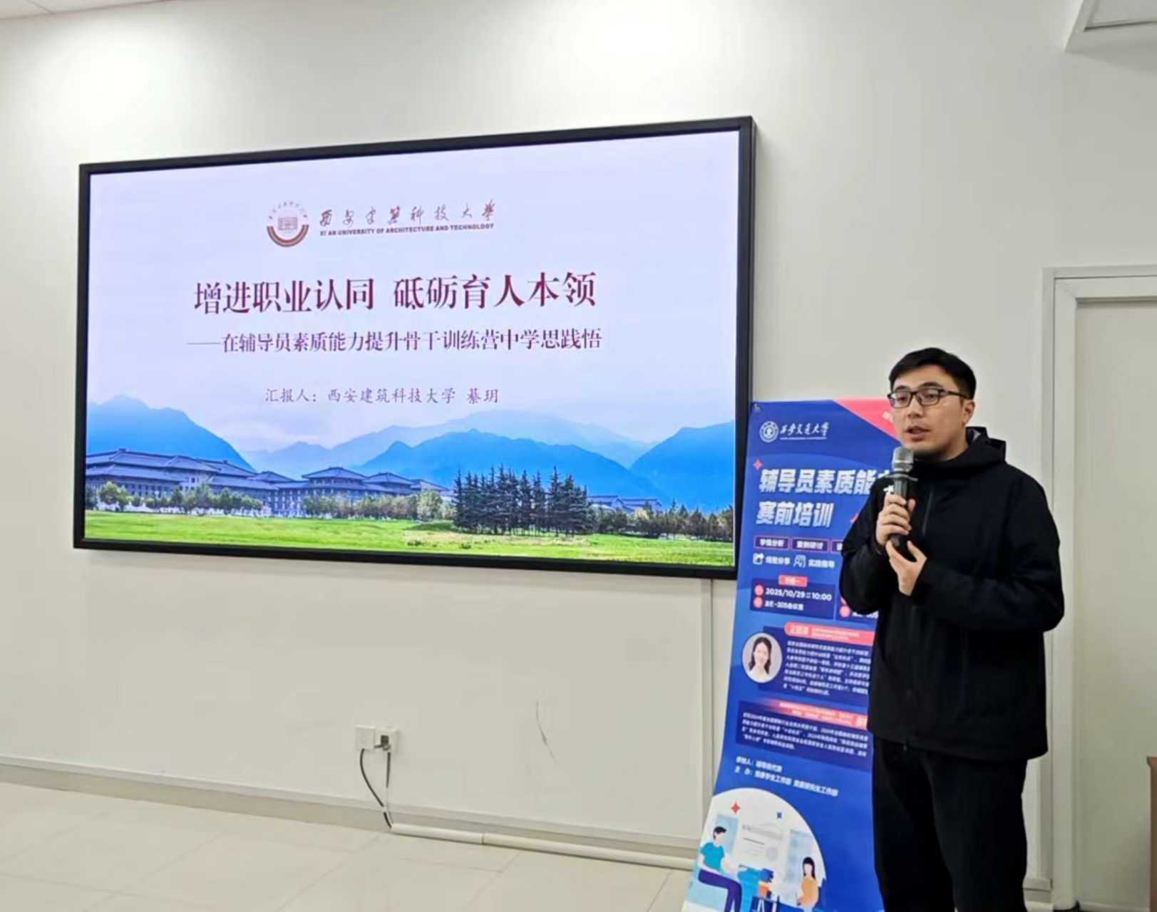 綦玥以《增进职业认同,砥砺育人本领》为主题分享了他在全国高校辅导员素质能力提升骨干训练营中的备赛历程与成长心得。他围绕“谈心谈话”,从语言表达、时间把控、问题聚焦、情感承接等方面阐释了谈话技巧,指出要把握学生真实需求,做到“有温度、有深度、有力度”。他通过真实案例现场解析,演示了如何运用矛盾分析法、时间分析法等方法精准切入问题本质,实现价值引导与心理疏导的有机统一。