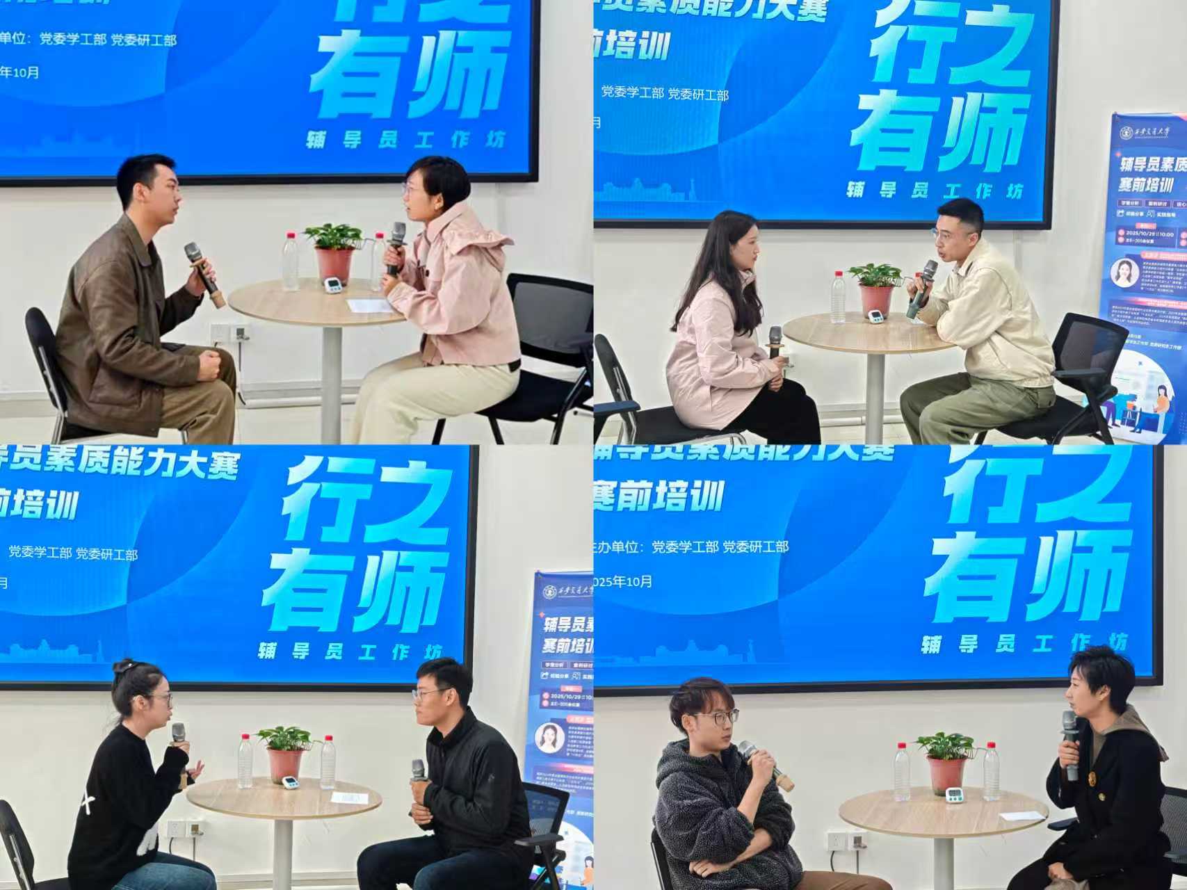 为切实提升辅导员的思政引领力,助力辅导员队伍专业化、职业化、专家化发展,西安交大于近日举办“行之有师”辅导员工作坊,邀请全国高校辅导员素质能力提升骨干训练营“十佳标兵”西北农林科技大学辅导员王昱泽、西安建筑科技大学辅导员綦玥开展专题培训。各书院、学院辅导员代表参加培训,学生处副处长、文治书院院务主任王琦主持本期工作坊。