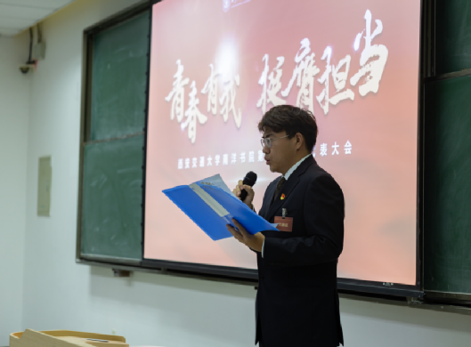 南洋书院学生代表陈炳旭指出,本次大会旨在加强书院学生组织的内部建设,培养学生主动适应时代发展的能力,推动校园民主建设的蓬勃发展,持续优化学生组织的架构。代表们应当传承红色基因,以奋斗姿态激扬青春,遵守学代会的章程和秩序,充分听取并审议书院的各项报告和名单,珍惜民主权利,积极建言献策,为书院和学校的建设与发展贡献智慧与力量。