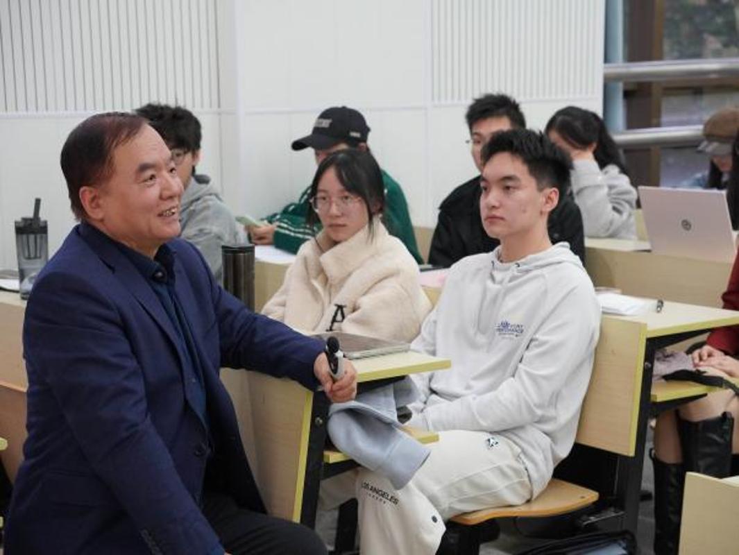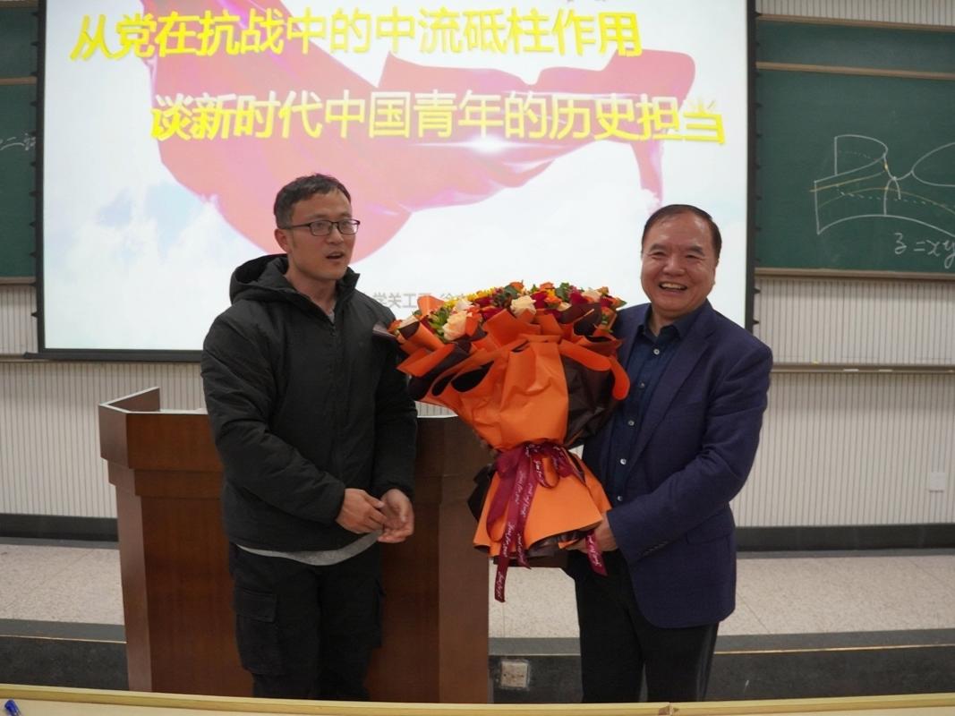 课程结束后,段继超为徐文雄献上鲜花。此次党课紧密结合党的历史使命与青年成长路径,引导大学生将个人发展融入国家命运,以坚定理想信念指引人生选择,在新时代新征程中勇担使命、砥砺前行。