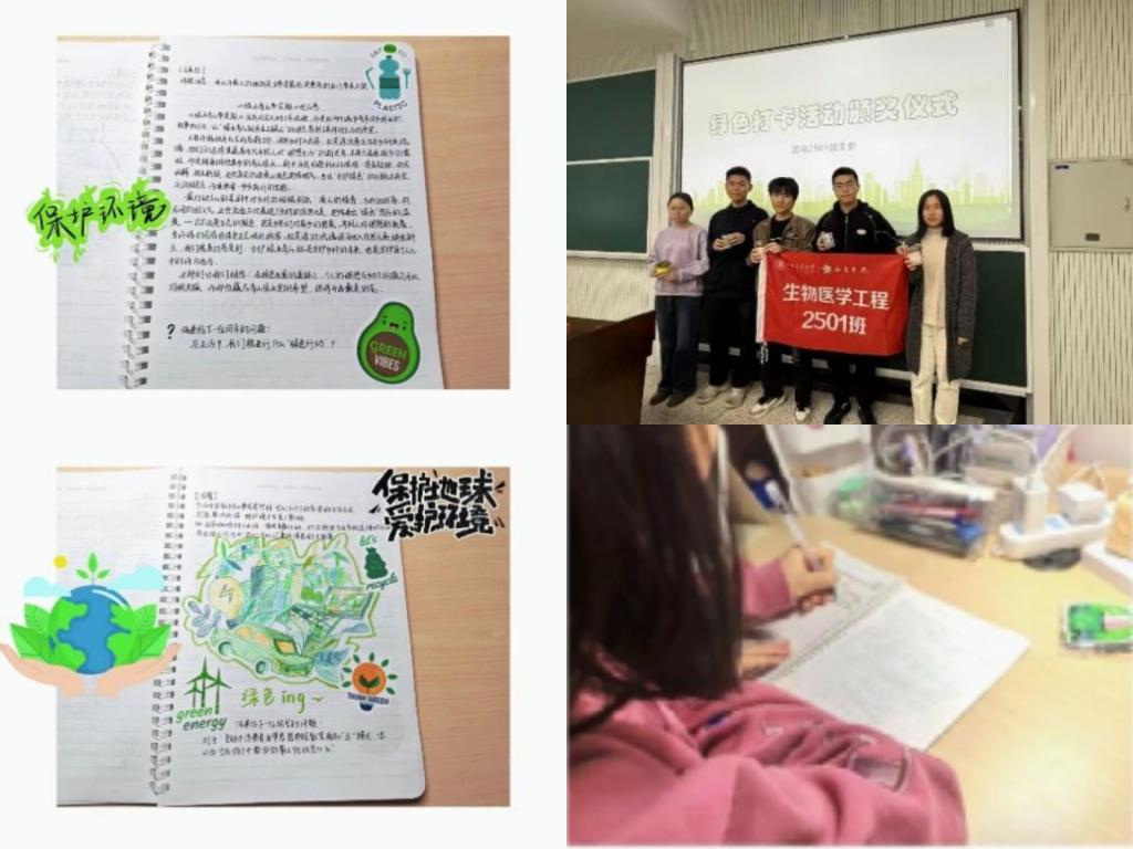 各团支部将环保理念转化为实际行动。医电2501团支部开展“绿色心声”漂流日记,记录环保思考与创意实践;数学类2501团支部组织旧物改造、垃圾分类挑战,推动资源循环利用;低碳知识竞赛、节能打卡、环保宣讲等活动,构建起“知行合一”的绿色育人体系,引领青年成为生态文明建设的践行者与倡导者。