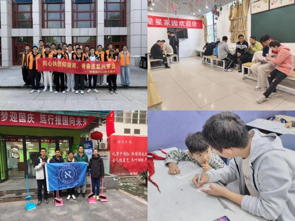 弘扬“奉献、友爱、互助、进步”的志愿精神,以微光汇聚暖流,用行动践行担当,各团支部将服务融入日常、化为自觉。数学类2504团支部投身校园劳动,清扫落叶、校园自行车规整,在躬身实践中领悟“一屋不扫,何以扫天下”的朴素哲理;医电2501团支部开展“微光成炬,向爱而行”志愿活动,走进乡村看望老人、陪伴孤独症儿童,在倾听与陪伴中传递青春温度,彰显青年责任;物理类2501团支部赴晨星社工中心助学辅导,以耐心陪伴点亮孩童梦想;各支部联合英仔爱心社走进残疾人阳光家园,通过绘画、棋艺、手工传递关怀。劳动包干、社区宣讲、孤独症儿童陪伴等志愿服务,让团日活动既有温度又有深度,青春在奉献中熠熠生辉。