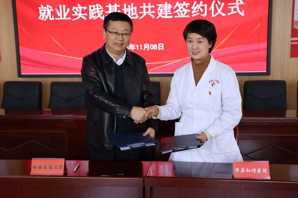 随后,师生与医院领导、一线医务人员及西安交通大学校友代表开展座谈,就“基层医疗人才培养”“农村常见病预防”“校院志愿帮扶合作”等议题进行深入交流。双方在“医学生基层实践培养”方面达成共识,并共同签署了西安交通大学宗濂尚德书院与洋县和谐医院“就业实践基地”共建协议,为引导毕业生扎根基层、服务群众搭建了实践平台,进一步激励医学生投身基层医疗卫生事业,在祖国和人民需要的地方建功立业。