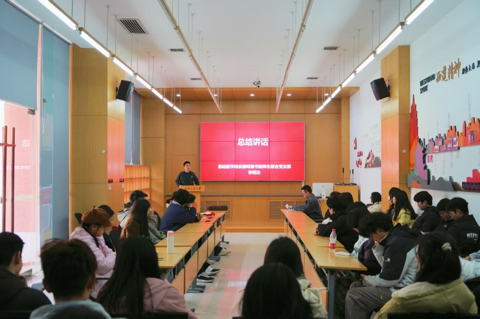 参观结束后,党支部开展集体学习研讨。邀请西安交通大学学生微宣讲团成员赵学琴以“革命与教育的交响——永远的彭康校长”为题,讲述交大人始终与党同心、与国同行的责任担当。法医学院明德书院本科生党支部韩赢萱围绕“坚定信念、铭记初心——纪念西安地方党组织成立100周年”进行分享,回顾了西安地方党组织团结带领人民群众砥砺奋进的百年征程。基础医学院宗濂明德书院师生联合党支部韦婷以“薪火相传,医路报国——西安交通大学医学部的百年征程”为主题,阐述了一代代医学人为祖国医学事业无私奉献的感人篇章。