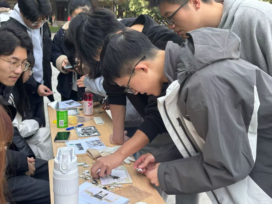 在北一门爬山虎楼下的“拼绘医史”环节,参赛队员凝心聚力,合力拼接历史图片,一幅幅承载着先辈事迹的画面逐渐完整。结合拼图内容,同学们深情讲述抗战迁陕时期的医学故事,红色精神在一块块拼图的拼接汇聚中直抵内心。